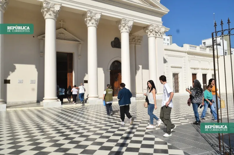 A bordo de 8 colectivos dispuestos por el Municipio, más de 400 pasajeros, entre vecinos de la ciudad y turistas, pudieron recorrer el tradicional circuito de la Semana Santa en Corrientes: las siete iglesias históricas.